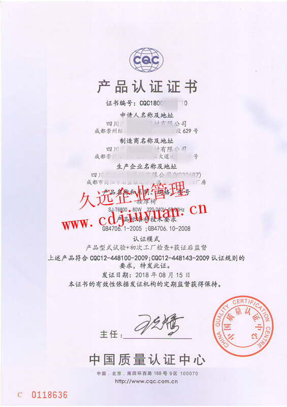 CQC標志產品認證證書